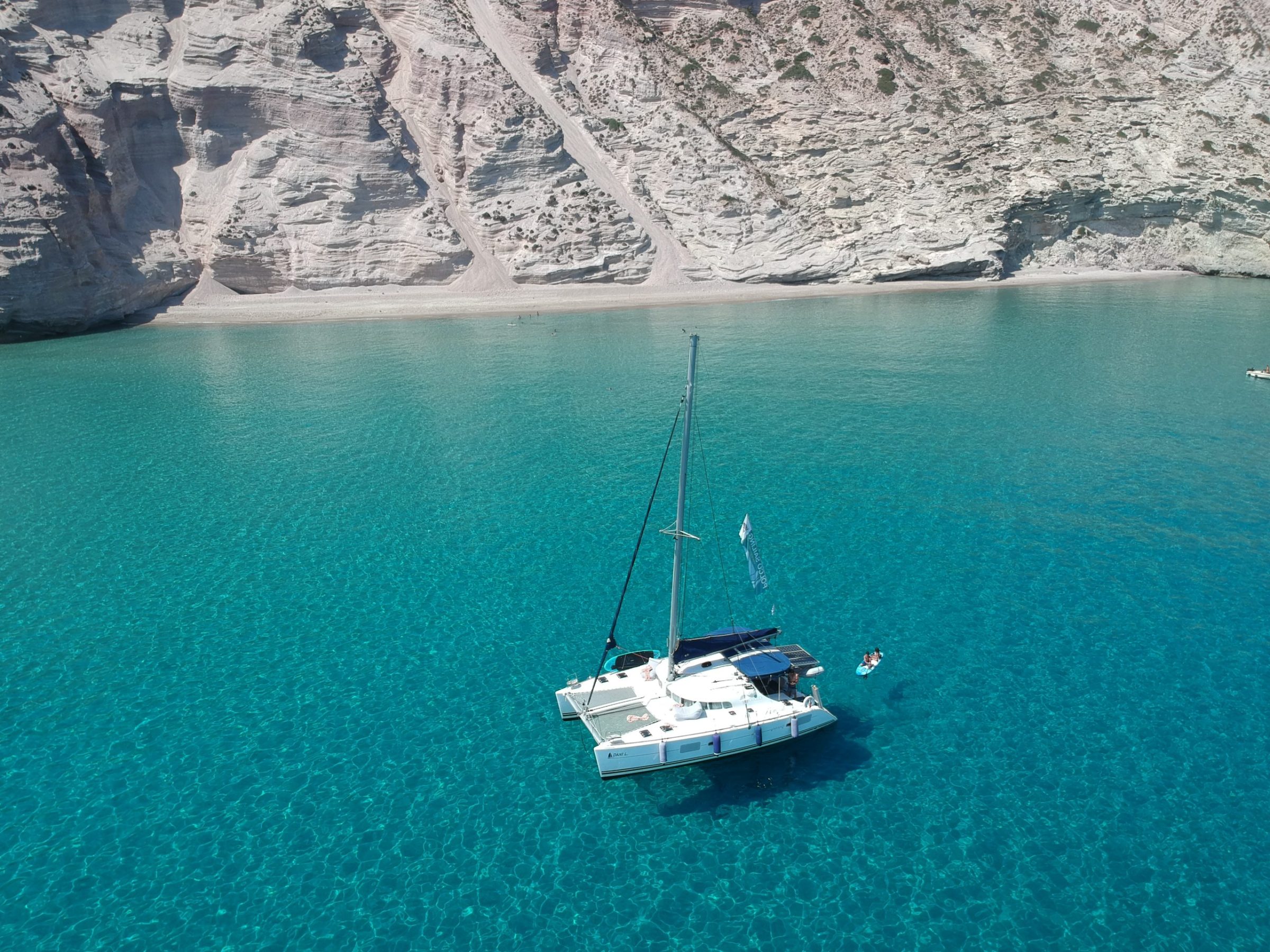 Con un crucero privado en catamarán, podrá disfrutar de hasta 9 horas navegando por Milos y las islas vecinas de Poliegos y Kimolos. Los cruceros en catamarán son amplios y muy cómodos para recorridos largos.